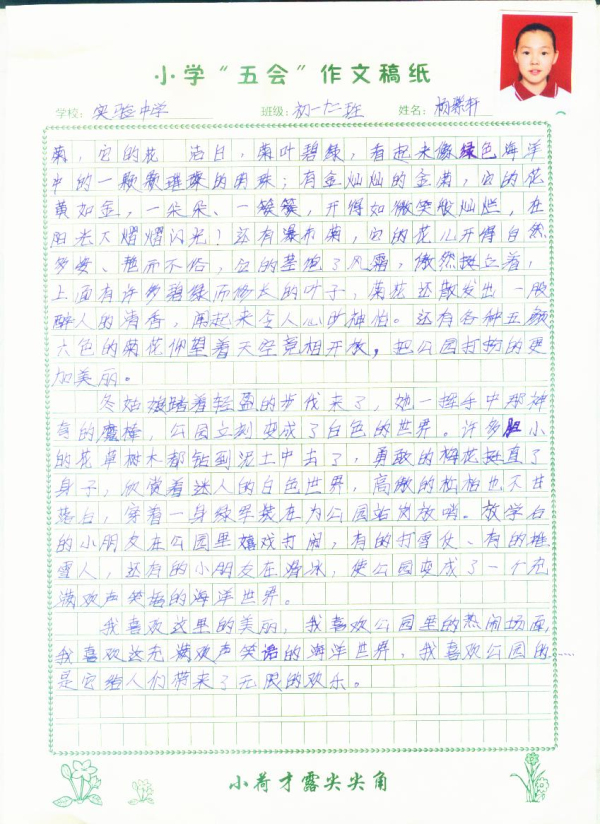 美丽的小公园(临淄区实验中学 初一十二班 杨紫轩)