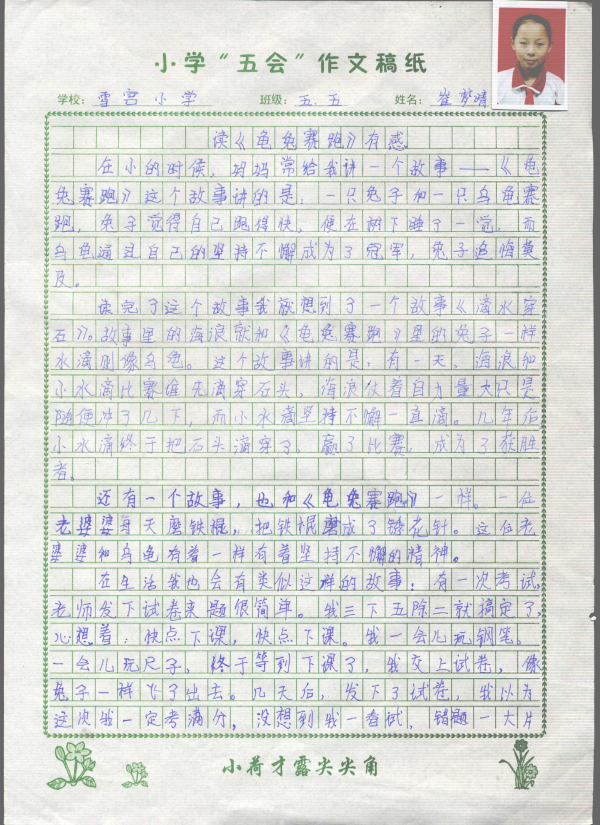 读《龟兔赛跑》有感(临淄区雪宫小学 五年级五班 崔梦晴)