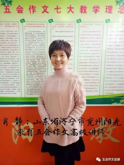 武艳丽老师简介:山东省青岛市沧口五会作文高级讲师。毕业于山东师范大学中文系,汉语言文学本科学历,市优秀中学语文教师。从事中、小学语文教学20年,潜心研究并致力于作文与阅读教学,辅导学生作文多次获奖。教学严谨,课堂生动,爱生如子,诲人不倦,深受学生、家长喜欢。在五会作文总部举办的,2018年全国五会作文讲课大赛中成绩突出,被评为五会作文高级教师。