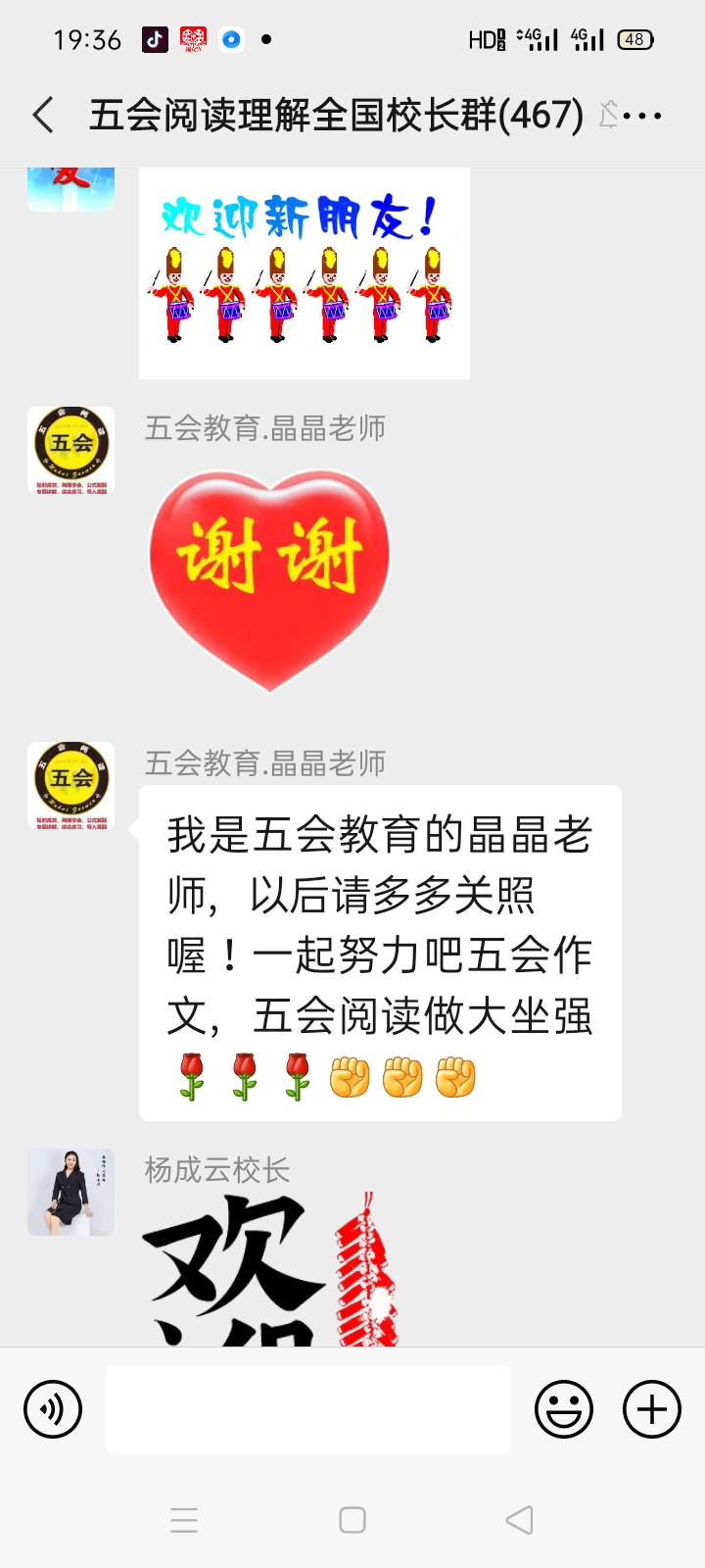 喜讯:****五会大家庭又添新成员。欢迎湖南省娄底市娄星区陈校长加盟五会作文、阅读和看图写话。